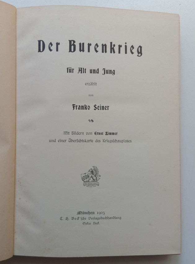 Munich: C. H. Beck, 1903. 8vo, v + 362pp. Hardcover with red lettering to spine, half-tone illustrated front board. With various illustrations and monochrome plates. Fold-out map at rear. Printed in the old German ‘Fraktur’ typeface. German text.