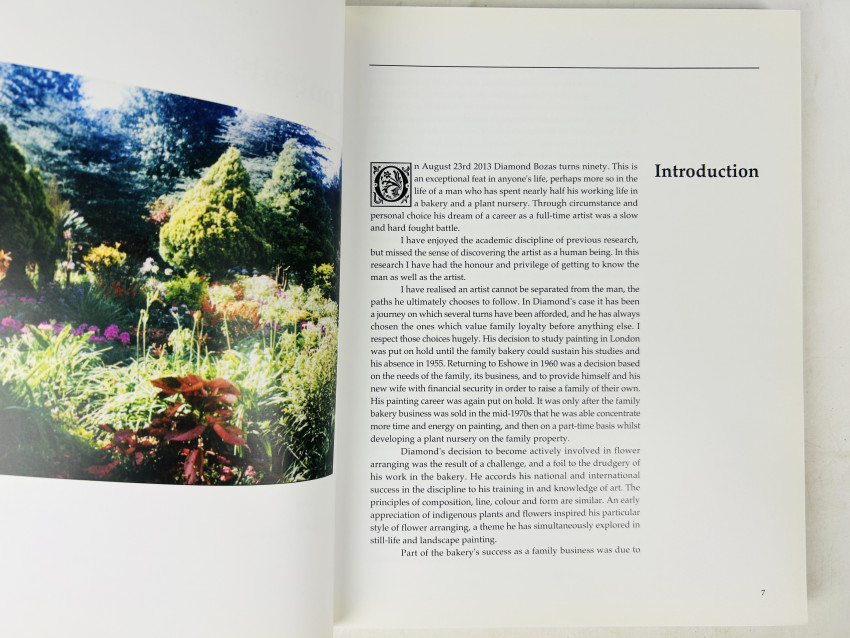 Scarce publication. This book was produced in tandem with the Tatham Art Gallery's major retrospective of his work to celebrate Diamond Bozas's 90th birthday in 2013. The author Brendan Bell was also director at the Tatham Art Gallery, and he describes Diamond Bozas as a remarkable man, as “no other artist has portrayed Zululand’s indigenous vegetation, its historic sites and its cane farming operations as he has,”, and that this helped people to see Zululand and traditional Zulu artefacts in a different way.Bell confirmed that: “Diamond’s work is a record of our past – it’s part of our cultural heritage.”