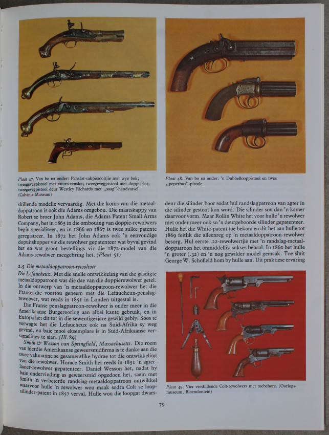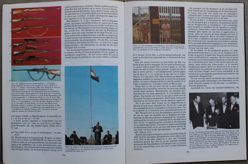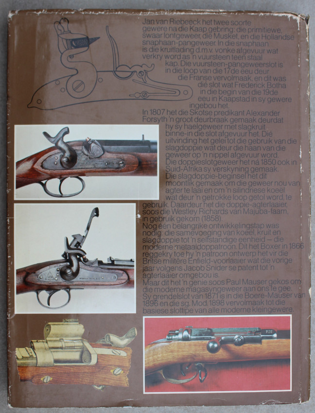 209pp. Illustrated with 123 photos in colour and 185 black & white illustrations of guns, accessories, parts and ammunition through the centuries. Text in Afrikaans.