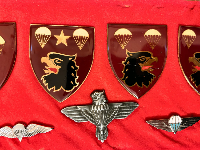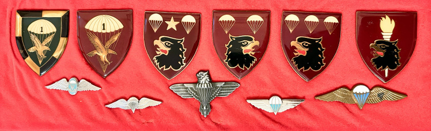 The top row of badges are shoulder insignia from the various Parachute Regiments.
