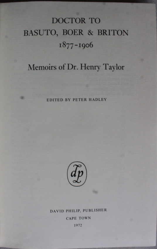 The Gun War in Basutoland, Anglo-Boer War.....recounted by a doctor whose full life was a blend of social service and personal danger. Dr Henry Taylor's autobiography spans his term as a medical officer in the Leribe district from 1877-1883, and his life in private practise in Ficksburg in the Orange Free State untill 1906.