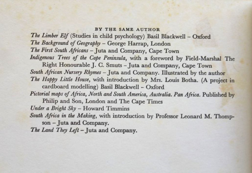 Margaret Whiting Spilhaus (1889-1981), author of books on numerous subjects ranging from geography, genealogy, botany to children's literature, but mainly South African history. Apart from writing she was also a book illustrator and cartographer known for a series of 5 large-format pictorial maps published between 1927 - 1943.