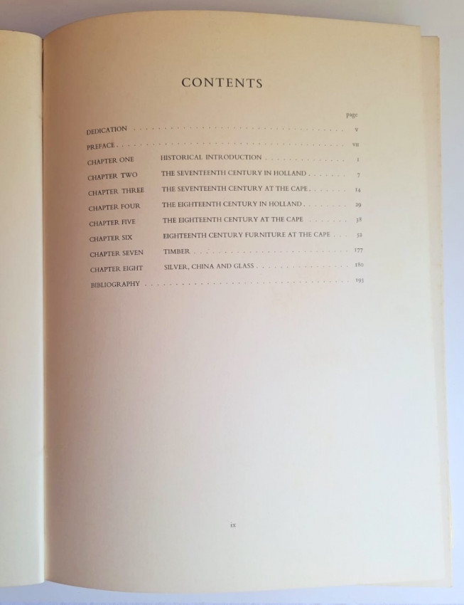 Covers seventeenth and eighteenth century furniture at the Cape and in Holland, as well as chapters on glass, silver ,china, and timber