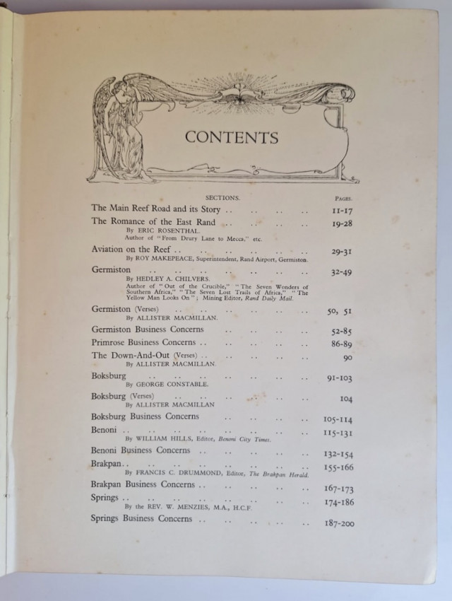 Allister Macmillan, known for works on South African history, covers railway connections between the towns in 1892, property dealings, and characters like District Surgeons and Swiss immigrants. It reflects the Witwatersrand gold fields' chaotic growth.