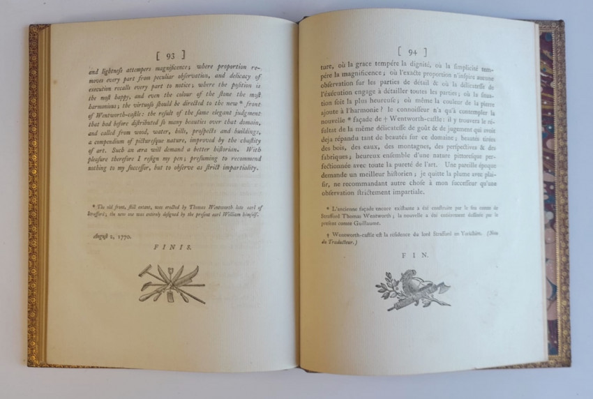 94 pp, parallel text in English and French, title with engraved vignette, woodcut initials and head- and tail-pieces