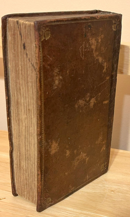 552 pages. 2nd Edition, 1713 (1700 – large quarto). Frontispiece. Printed for Jacob Tonson at Shakespear’s Head over-against Katherine-Street in the Strand, London. Octavo, 552 pp, 12.5cm x 19.8cm. Original full brown leather with 6 gilt bordered panels on spine; gilt bordered boards front and back, with gilt floral motif on all corners to front board. Frontispiece after P.L. Vergne, engraved on copper; engraved decorative chapter headings, and initial letters.