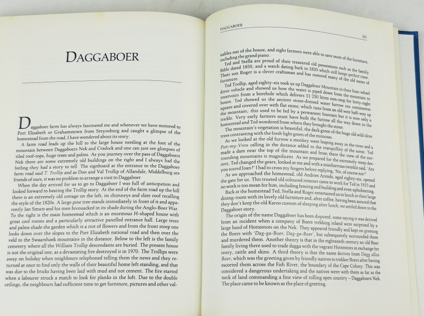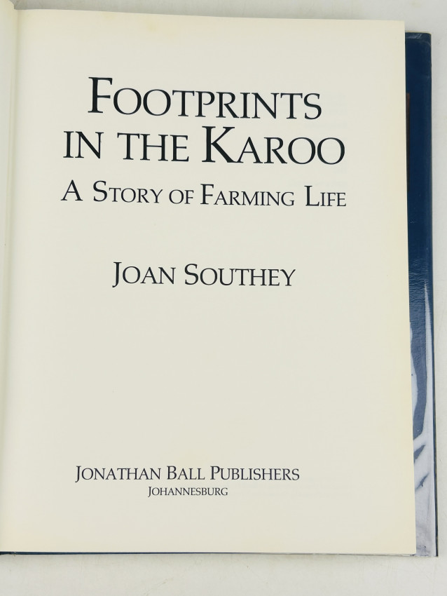 In "Footprints in the Karoo" Joan Southey takes the reader on an energetic rural journey through her beloved Karoo - going the homes of many prominent farming families, she provides a glimpse of what actually happens on their farms dotted like oases over the dusty countryside. She acquaints us with the legendary Karoo hospitality, best displayed at social gatherings, weddings, funerals and the inimitable New Year's Eve Dance at the town hall. She reveals the delights of the country kitchen with its shelves of bottled preserves and strings of home-made wors, and she allows us to eavesdrop on the party-line telephone exchange, its operators presiding authoritatively over all local news and gossip. Visits to the barbershop, shopping expeditions to town, dispersal sales and street auctions - all are described with affection and humour and weave a rich tapestry of farming life in the Karoo.