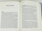Blue boards with a dust jacket in good condition. There are a couple of small marks on top of the pages.