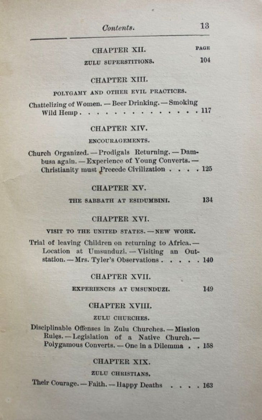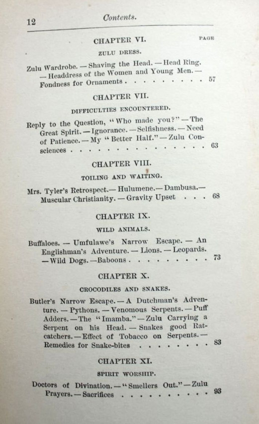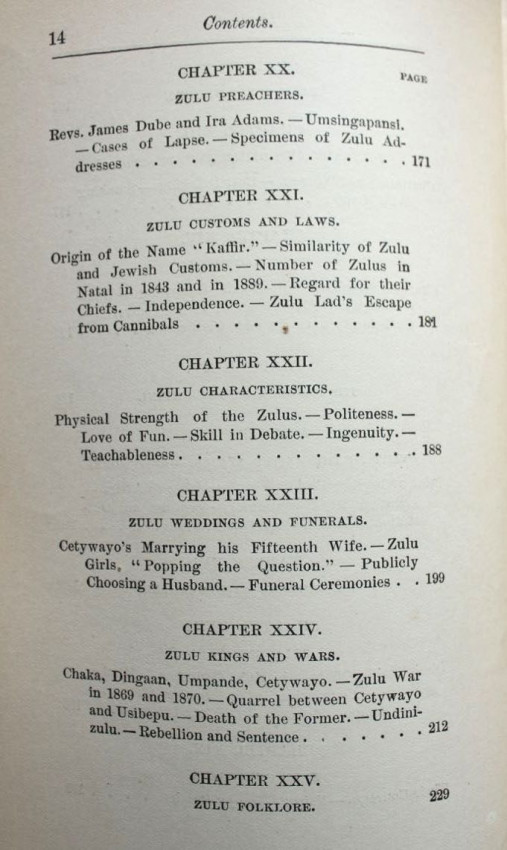 'An interesting account of the Zulus and their country from 1849-1888. Mr. Tyler was fully of opinion that Sir Bartle Frere's policy was justified, and that the Zulu Problem was a question which had to be settled without delay in view of the military situation in Cetywayo's country. He observes "that Natal was in peril, no clear-headed man can deny. The colonists were near the crater of a volcano liable at any time to eruption. Cetywayo could not control his warriors." There is a valuable chapter on Zulu folk-lore, and the volume is illustrated by a large number of original drawings.' - Mendelssohn Vol.II, page 532