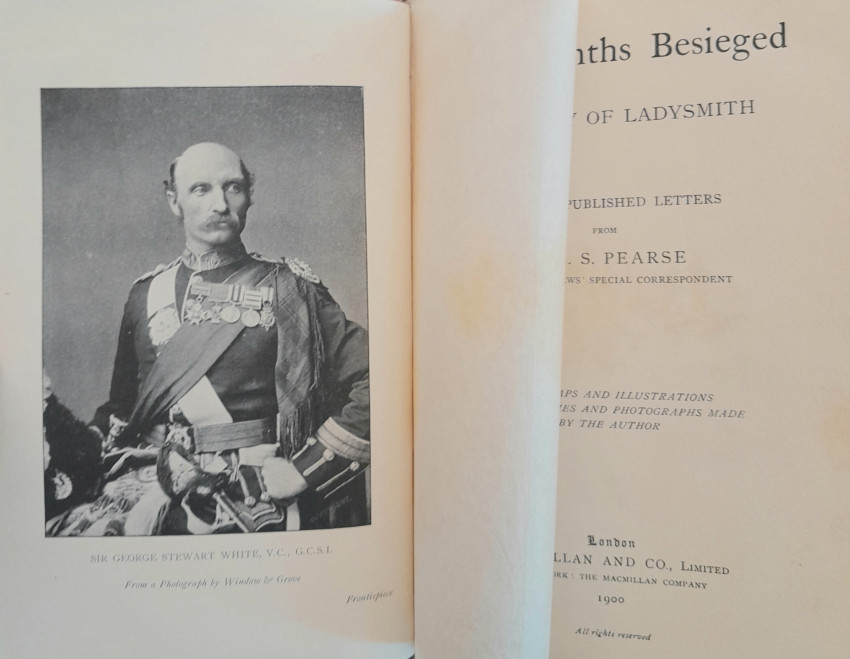 Half leather binding with gilt lettering on spine, pp. xiv + 244, frontispiece of Sir George Stewart White, b&w illustrations, fold-out map at the back. Foxing on end pages, light wear to board edges, else very good.
