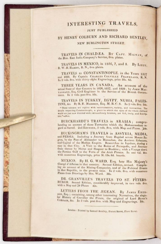 Mendelssohn (S.) A South African Bibliography, volume 2, pages 248/9, ‘Sketches of life in the Cape Colony and Kaffraria during the first quarter of the nineteenth century. There is some information respecting the lives of the Boers of the interior at this period, with a description of the Hottentots and k…rs, and of the slave system of the country, together with some sporting tales….’