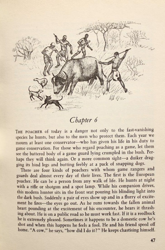 'Nick Steele is a senior warden in Zululand and was primarily responsible for raising the mounted section in the Zululand Game Reserves. In this account he describes encounters and incidents with poachers and big game whilst working as a mounted ranger at a lonely outpost in the Umfolozi Game Reserve.' - editor's note