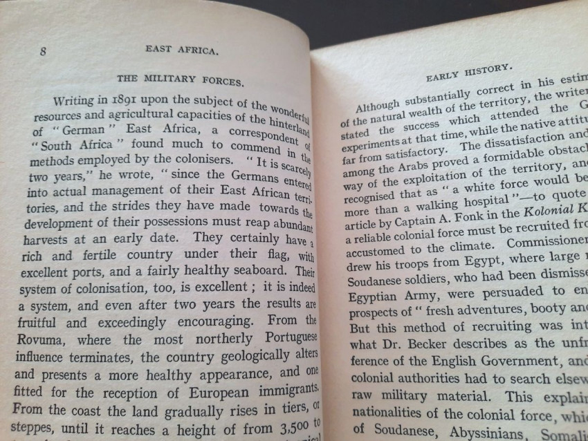 - The chapter "Early History" contains a short sections "German East Africa Company" and "The Military Forces" with descriptions of important aspects on these topics;