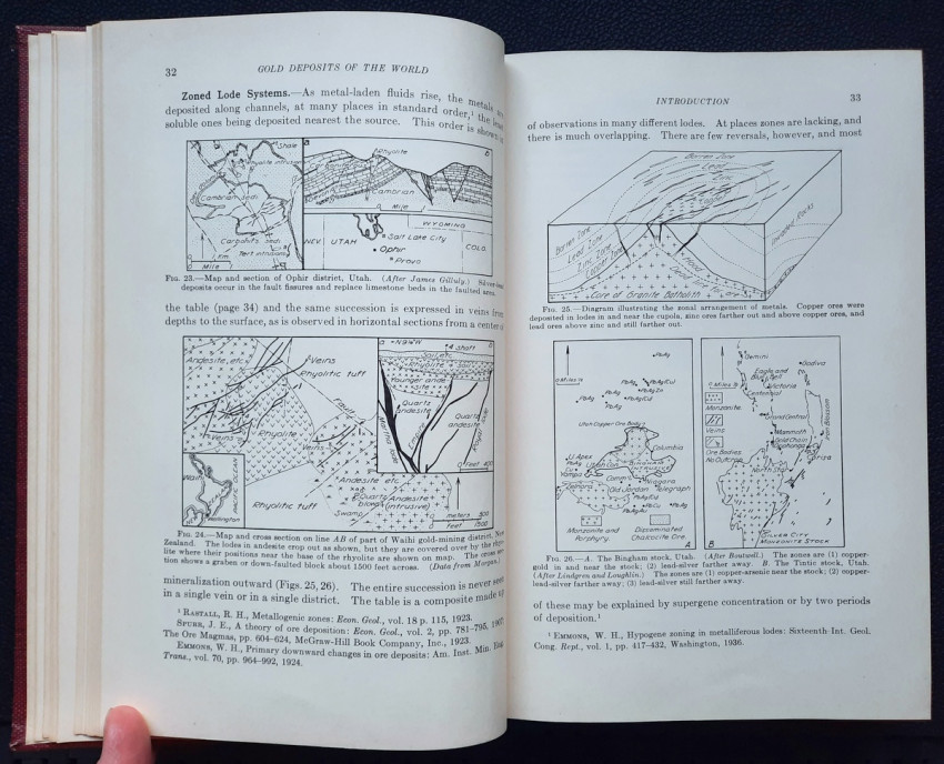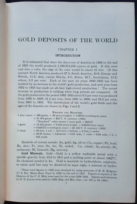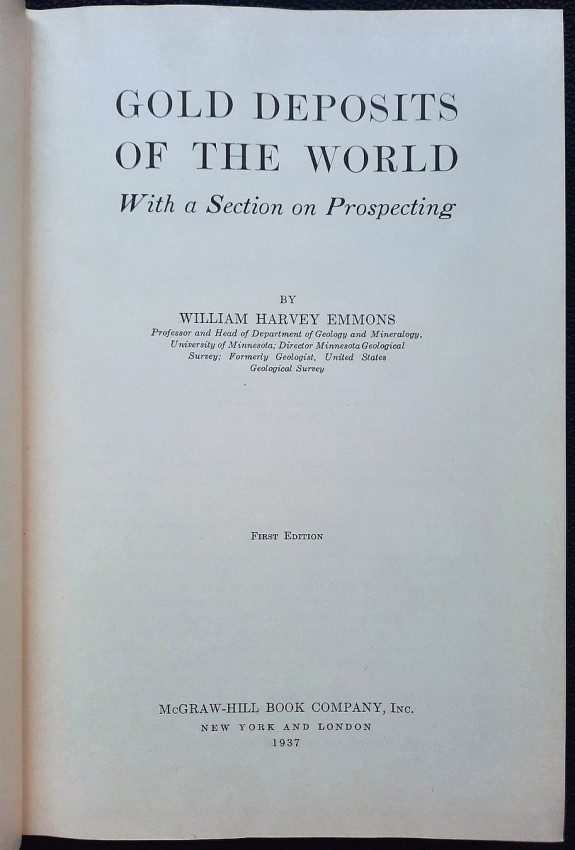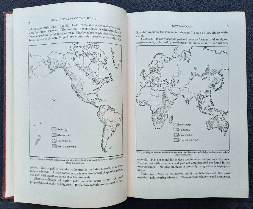 Author presents practicable descriptions of the geology of the principal gold-mining regions of the world and many of the lesser ones. By providing the positions of known gold deposits, it is believed that the prospector may be aided in the search for undiscovered deposits. With more than 300 b&w illustrations (maps, plans, sketches, diagrams, tables, etc.). A very scarce title.