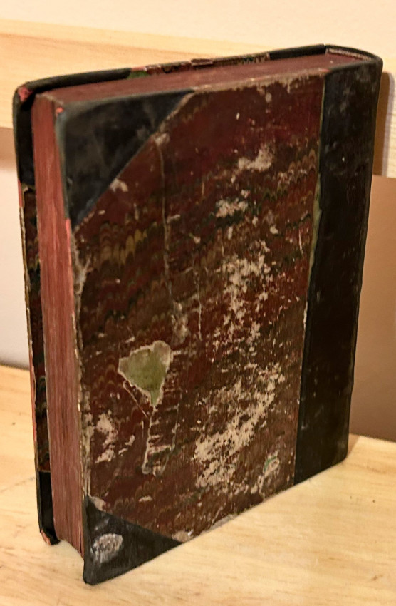 433 pages. Hardback, 1st edition. Brown marbled covers, leather corners & spine. Gold lettering on spine. Covers have scuff mark as seen in photos. Bind is tight, contents are clean and tight. Browning to pages through age, especially along the sides. Foxing. Very good condition for its age.