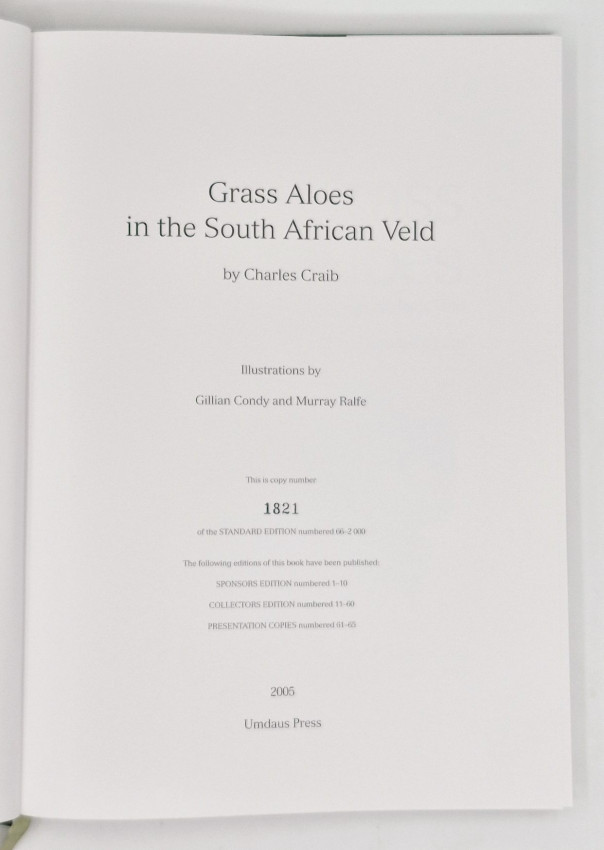From the preface: 'This book consists of a detailed account of the grass aloe species in habitat and in cultivation and represents the culmination of some 20 years of active research on this group. All the watercolour paintings of the different grass aloes and pencil drawings of their habitats have been prepared in situ, which has entailed much travelling throughout eastern South Africa where the different species grow.'