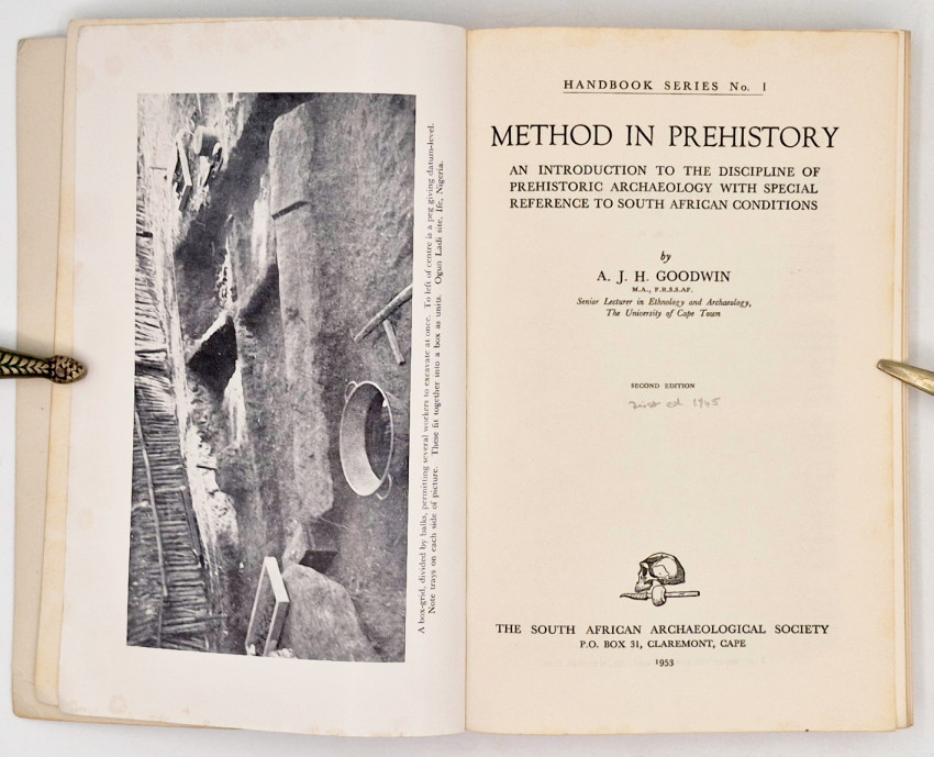 Goodwin (A.H.J.) Method in Prehistory. 184 pages, frontispiece, illustrations, grey card wrappers, a very good copy. Second Edition, 1953