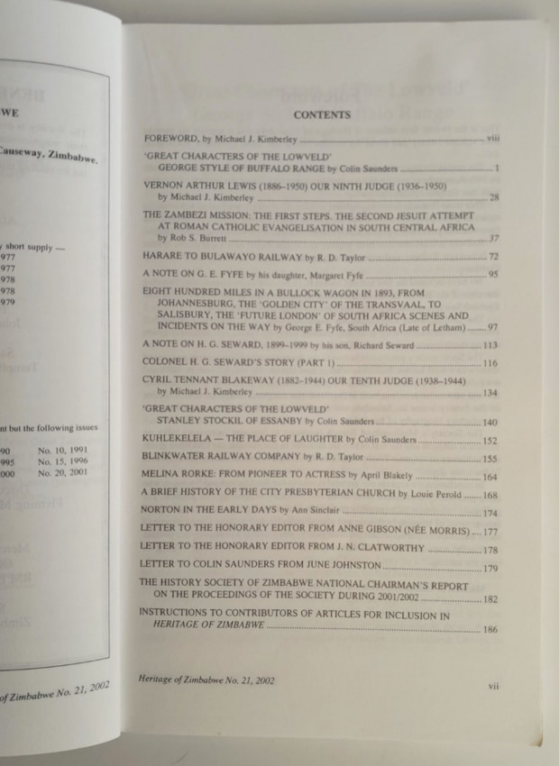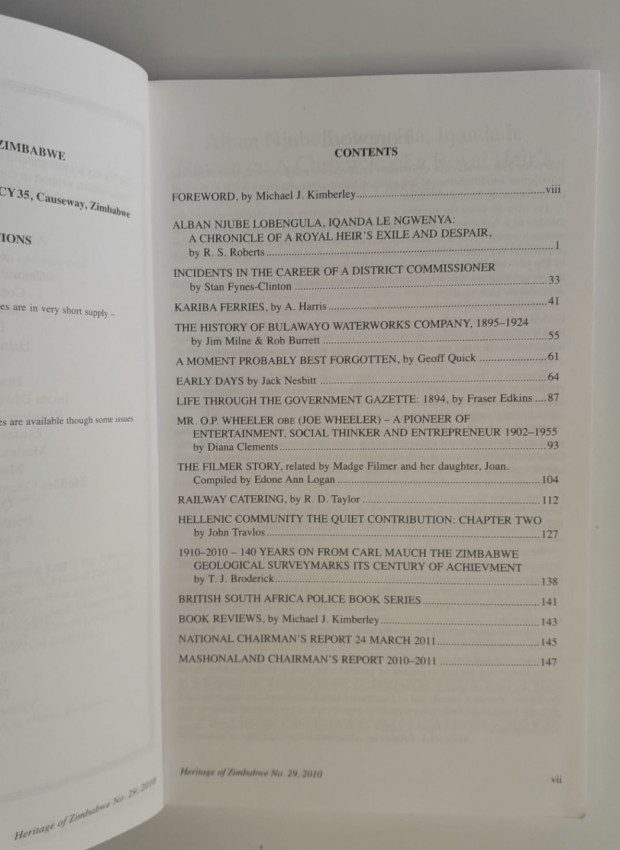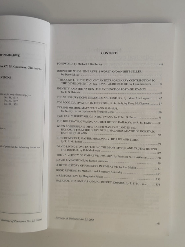 The publication focuses on Zimbabwean history and heritage, including: