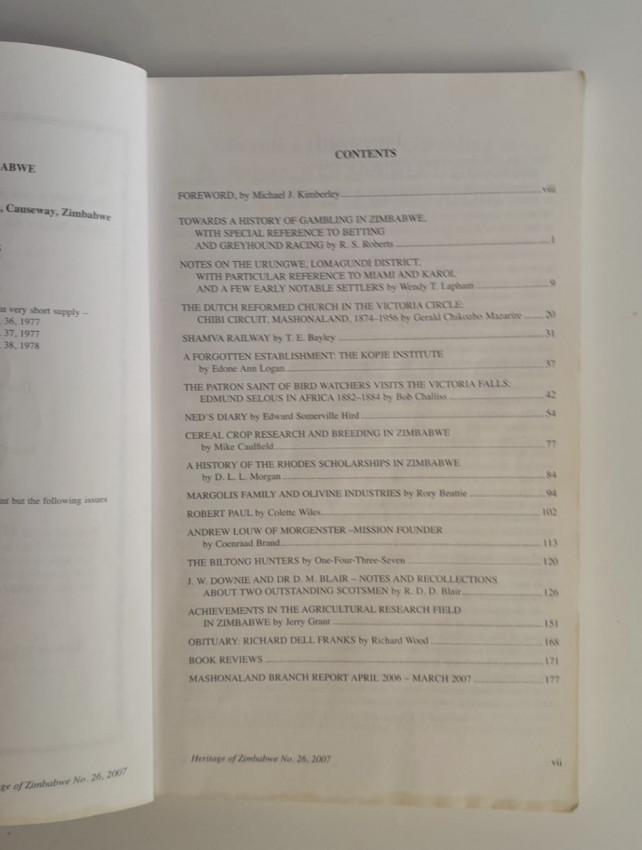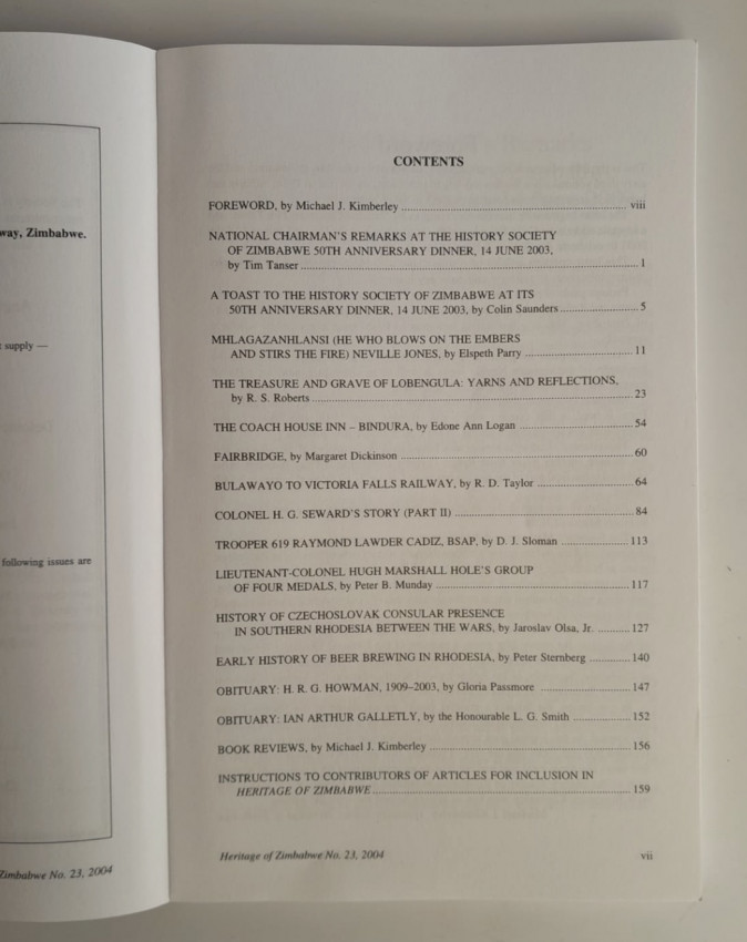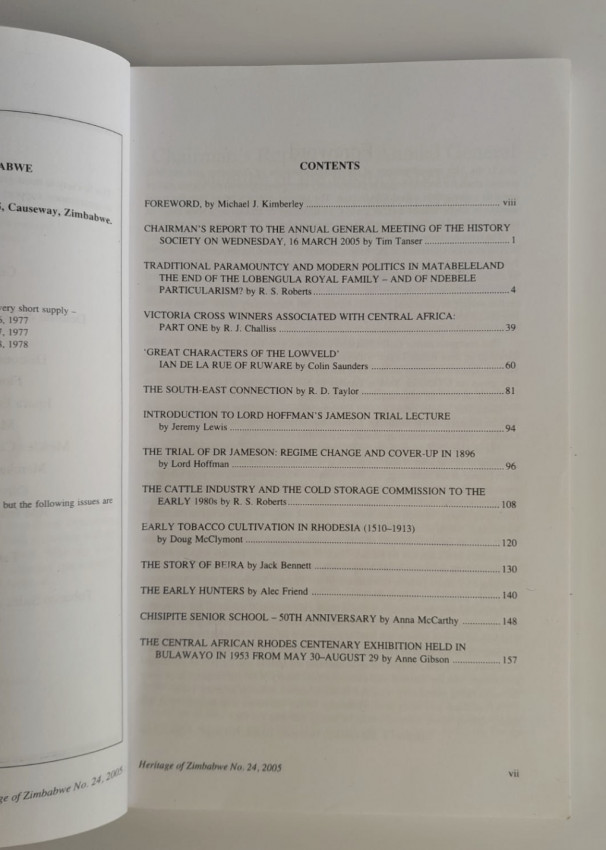 Heritage of Zimbabwe is the journal of The History Society of Zimbabwe. It replaced Rhodesiana which was the journal of The Rhodesiana Society absorbed by the National Historical Association and Heritage of the Nation, and later became the History Society of Zimbabwe, founded 1953.