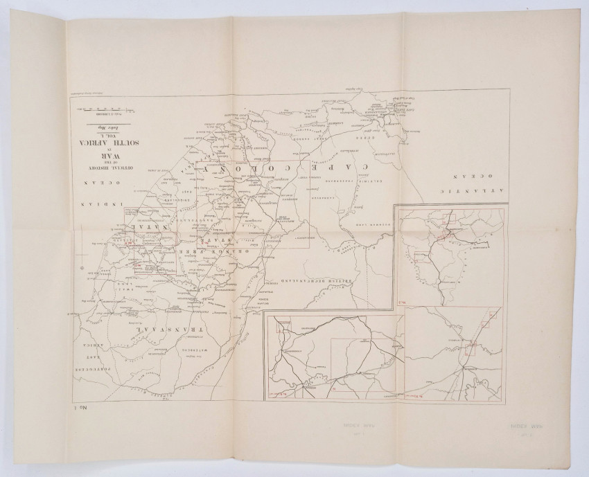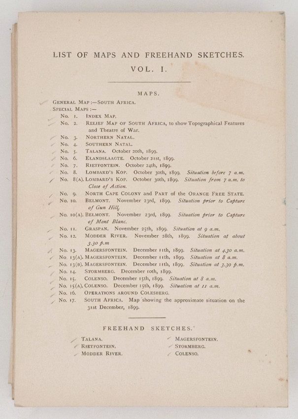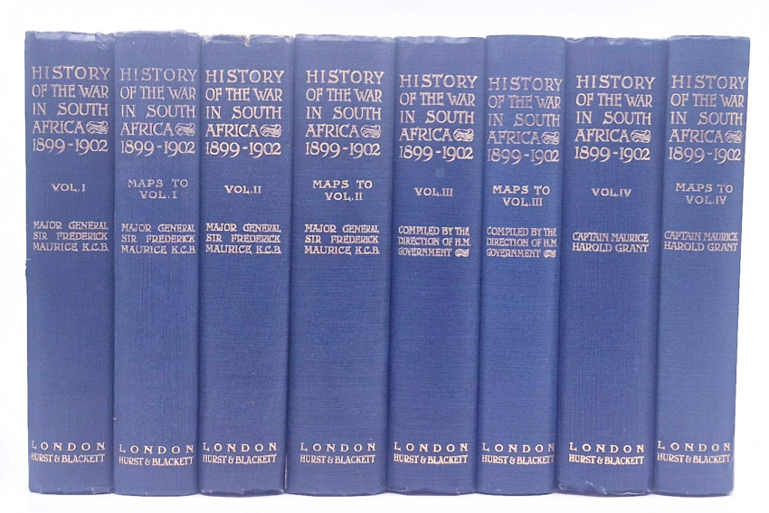 4 volumes of text - each with an accompanying volume of maps, together 8 volumes, 93 folding maps, 23 folding sketches, original blue cloth gilt, top edges gilt. The edges of the map volumes were made too thin and the cardboard has collapsed under pressure. Overall a very good set.