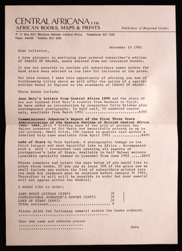 "Images of Malawi. A Collection of Paintings and Prose by Monica Peverelle."