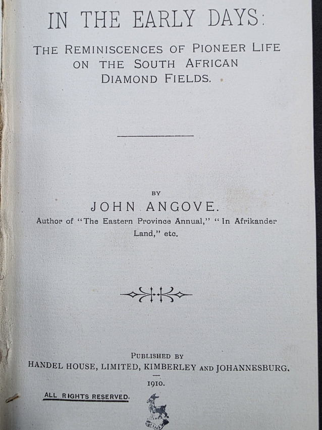 Published in 1910 by Handel House Ltd. Kimberley and Johannesburg.