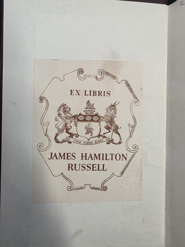 Binding: Has been rebound in newer chocolate brown cloth binding. B&W illustrations throughout. Ex Libris book plate James Hamilton Russell