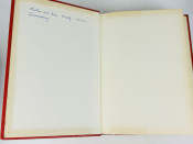The dust jacket is in good condition except for a small tear at the hinge between the front cover and the top of the inner flap. There is mild edge wear at the top of the spine. The dust jacket has been protected by thick plastic. The name of the previous owner is written at the top of the inside cover.