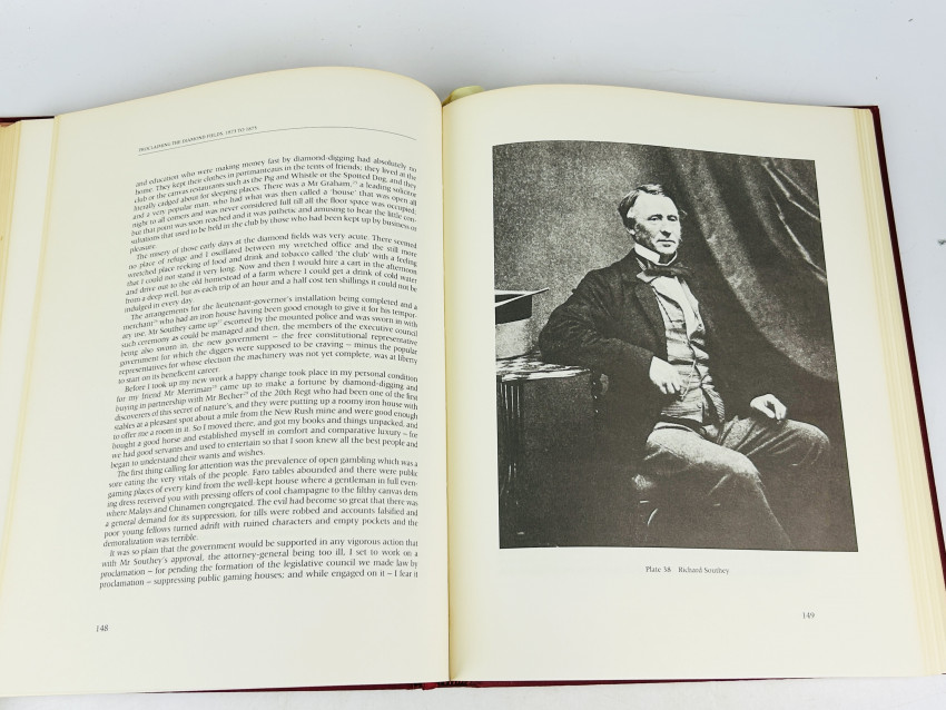 Soldiering, farming, copper-mining - Currey tried all these; then, on the advice of governor Sir George Grey he joined the Cape civil service. While in its employ in the late 1860's he was entrusted with the task of introducing to a sceptical Europe southern Africa's first diamond, the "Eureka". Later as secretary to the government of Griqualand West, he chose the new name of "Kimberley" for the burgeoning diamond-fields town of New Rush. But in 1875 Currey was blamed for the diggers' rebellion there, and this led to his dismissal from office and blighted his subsequently public career. While he was in Kimberley Currey befriended two young fortune-hunters, both of whom were to become renowned premiers of the Cape: Cecil John Rhodes and John X. Merriman. To both of them Currey was to remain a lifelong friend and counsellor.'