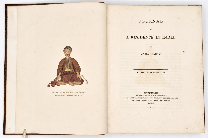 In 1808 when his sea-fighting years were over, her father took an appointment as head of the naval works at the British East India Company's dockyard in Bombay. When he went out to India he brought his now 23-year-old daughter along. During the long trip Maria Dundas fell in love with a young Scottish naval officer aboard, Thomas Graham, third son to Robert Graham, the last Laird of Fintry. They married in India in 1809. In 1811, the young couple returned to England, where Graham published her first book, Journal of a Residence in India, followed soon afterwards by Letters on India. A few years later her father was appointed commissioner of the naval dockyard in Cape Town, where he died in 1814, aged 58, having been promoted rear-admiral just two months earlier.