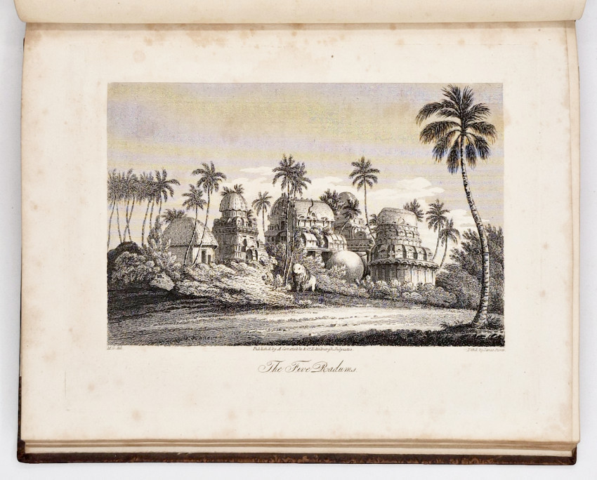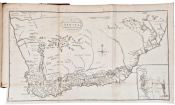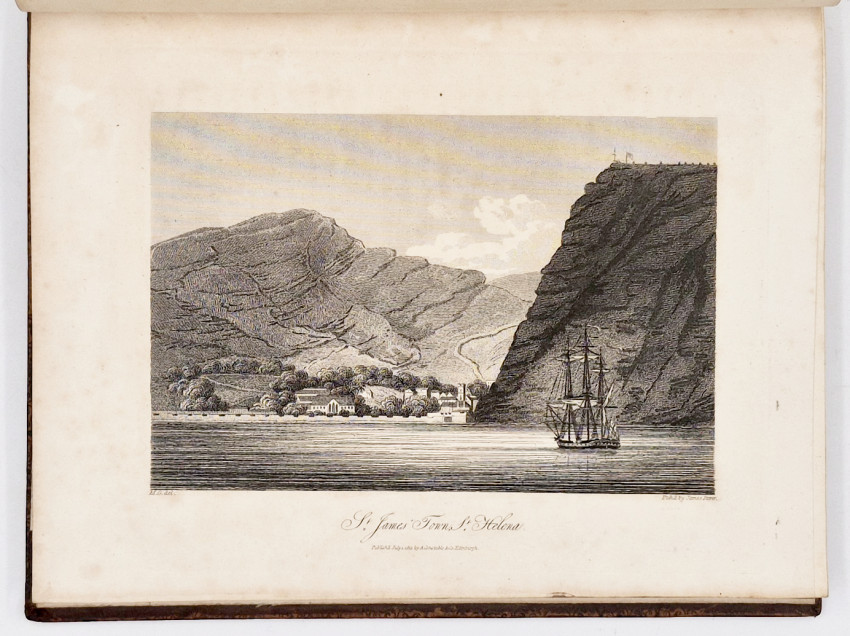 First edition: 211 pages, hand coloured frontispiece, 16 engraved plates (including the Castle and the Parade in Cape Town) – 2 folding, full calf binding with a gilt border, spine decorated gilt in panels - rear board detached, light foxing on the plates but overall the contents are bright, a very good copy.
