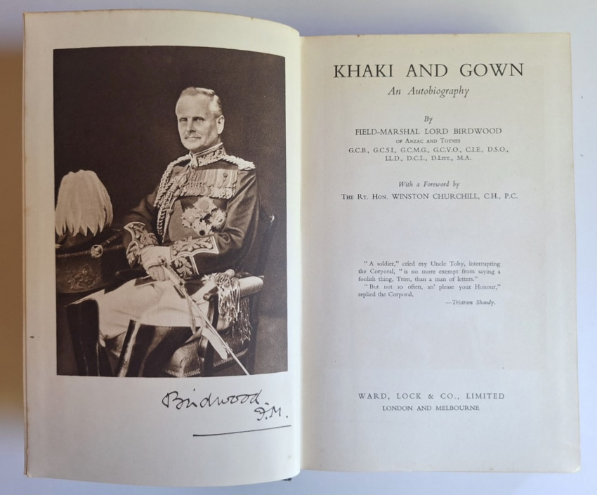 After serving on Lord Kitchener's staff, he became commander of the Anzac Corps at Gallipoli. Following the evacuation there, he went to France with the Anzacs and was engaged at Amiens and Passchendaele. He commanded the 5th Army during the March Retreat in 1918. Birdwood was active in the post-war years, being promoted to Field Marshal in March 1925 and made Commander-in-Chief in India (1925-1930). Birdwood served as a colonel of the Blues during the inter-war period and accepted the Honorary Colonelcy of the 75th Anti-Aircraft Cinque Ports Regiment (R.A.). His diplomatic duties included representing Great Britain at the funeral of Mustafa Kemal Ataturk. He was Master of Peterhouse College of Cambridge University from 1931 - 1938. Source Goodreads.