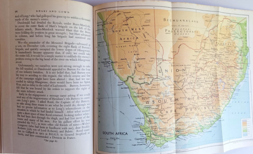 xxii, 456 pages and index, frontispiece and other black and white photographs, 5 folding coloured maps. Hard cover bound in navy cloth stamped in gilt on spine.