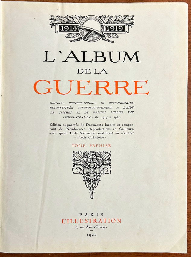 660 Pages. Hardback, "Prime Tome", published in Paris 1922. Folio size. Board with faux leather paper covering, gilt embossed. Wear to cover from age. Edges are worn away. Damage as seen in photos. Printed on gloss paper. Contents are clean, binding is tight. A myriad photos and illustration with narrative and descriptive texts. Very Good Condition.