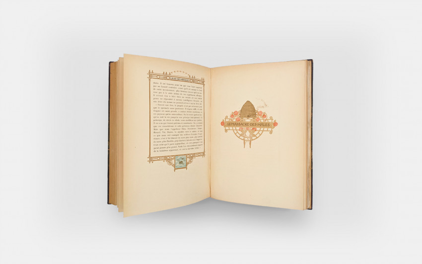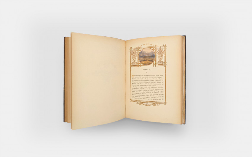 Very beautiful work by Adolphe Giraldon (1855-1933) in which the Marseille artist with a perfectly mastered Art Nouveau style expresses all his virtuosity in ornamental design. The chapter title pieces and the lamp bases, a combination of figurative objects and geometric art nouveau ornaments, perfectly introduce and conclude the chapters. They are like a small visual reward as you read.