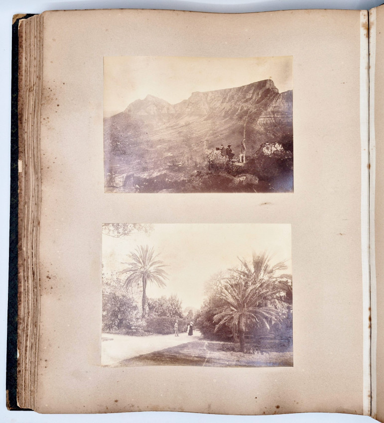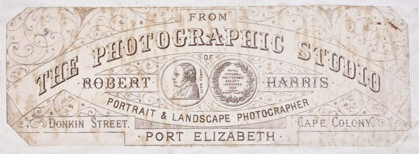 Robert Harris's label on the front free endpaper reads - From the Photographic Studio of Robert Harris, Portrait and Landscape Photographer, Donkin Street, Port Elizabeth, Cape Colony.