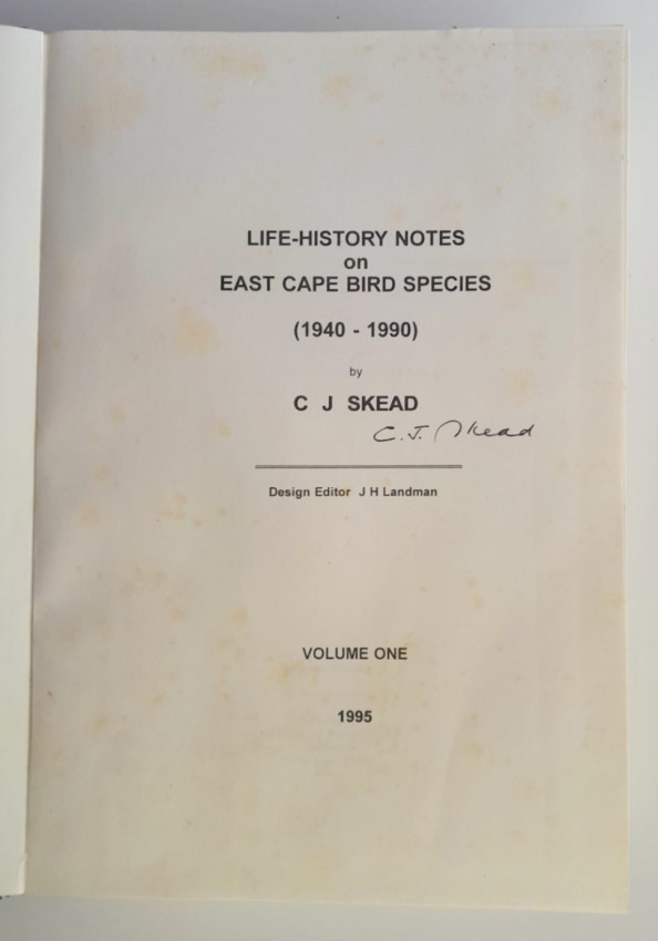 Cuthbert John Skead, also known as "C.J. Skead", "Jack Skead" or "Skeado" (30 April 1912 – 28 May 2006), was a South African naturalist, ornithologist, historian and botanist.