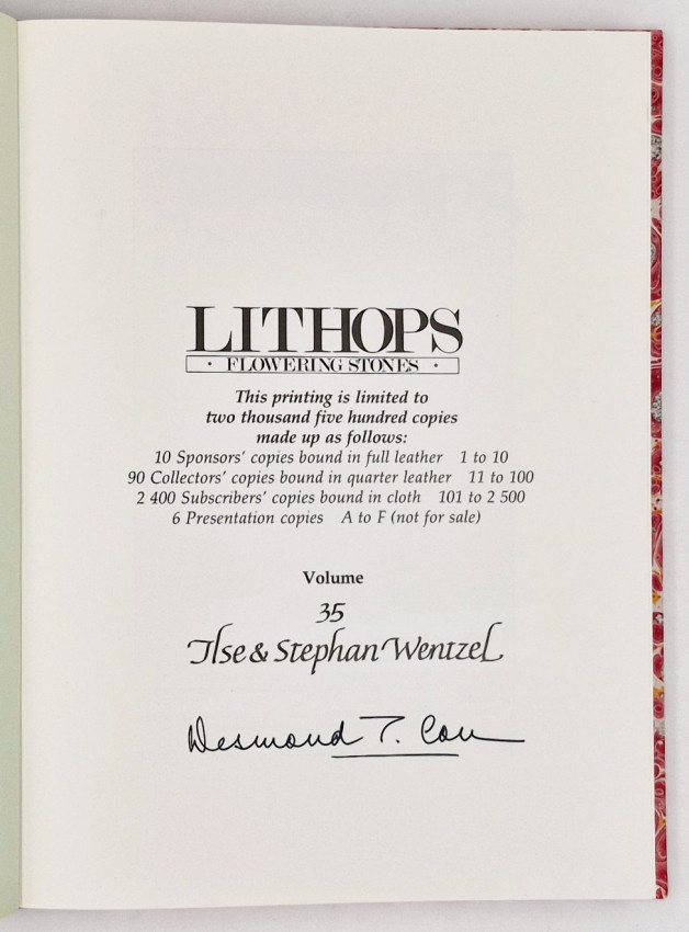 Editor's note: This first edition was Cole's first definitive work on this unique group of succulent plants which are entirely confined to the southern part of the African continent.