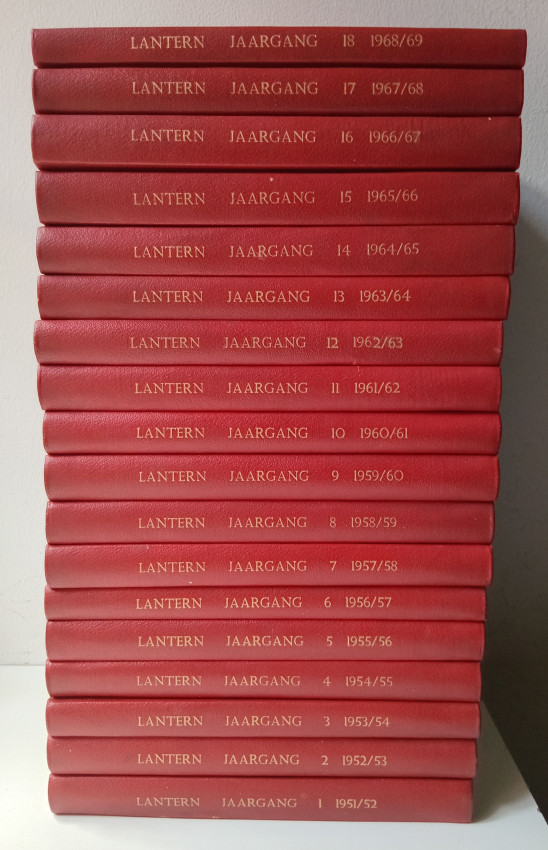 18 volumes, each with 3-4 issues, bound in hardcover bindings, with gilt lettering to spines. 4to. Various pages. Articles are a mix of English and Afrikaans texts. Vol. 1 No. 1 is noted in Vol. 1. No. 2 as a trial issue that was published in 1949, before the official launch of the magazine in 1951.