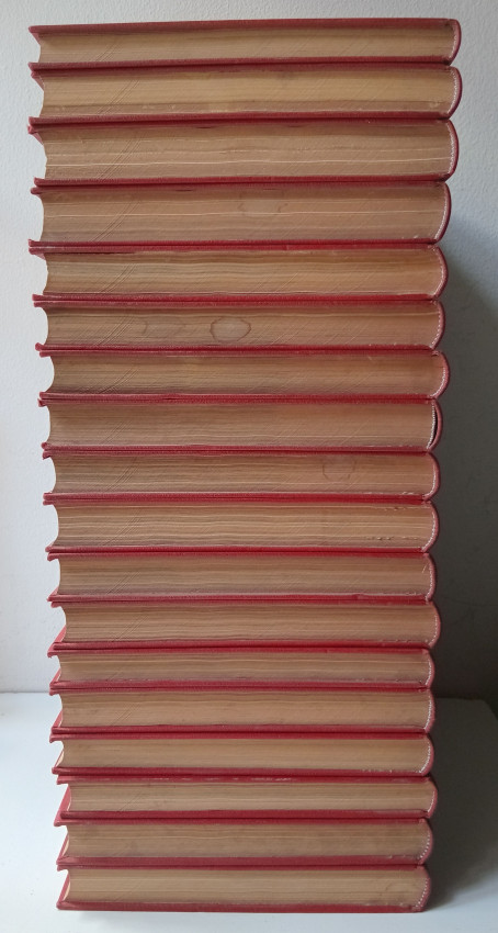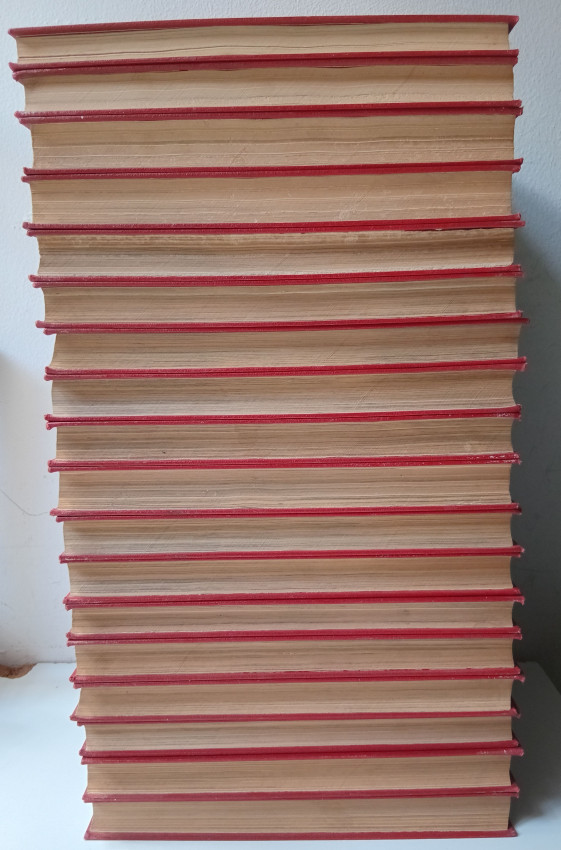 Condition: Overall very good. Slight rubbing to boards, a few small stains to some of the fore edges. Please note that there is some insect wear to last pages and rear endpaper and pastedown of vol. 14, with only one bit of text missing. Please also see photos. A few of the endpapers, pastedowns and edges of textblocks have slight and superficial insect wear. Otherwise texts are all clean and intact, each volume is well bound.