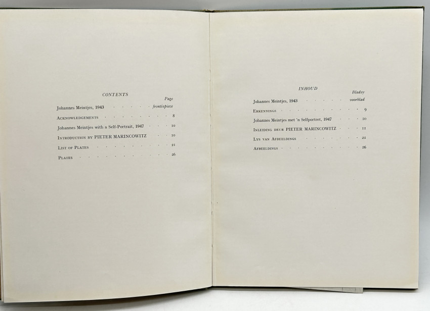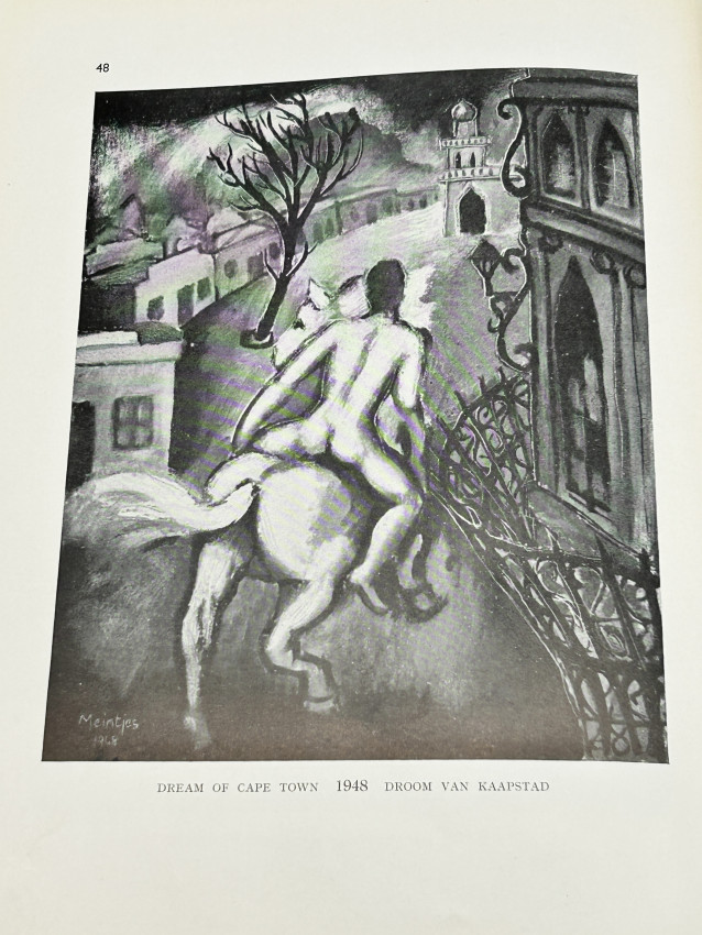 Meintjes first exhibition at the Gainsborough Gallery in Johannesburg in 1944 brought him immediate public acclaim and financial success. From 1945 to 1947 he studied at the Central School of Art in London, and later, back in Cape Town, he worked as an artist, broadcaster and writer. He lectured at the Worcester School of Drama and at the Cape Technical College.