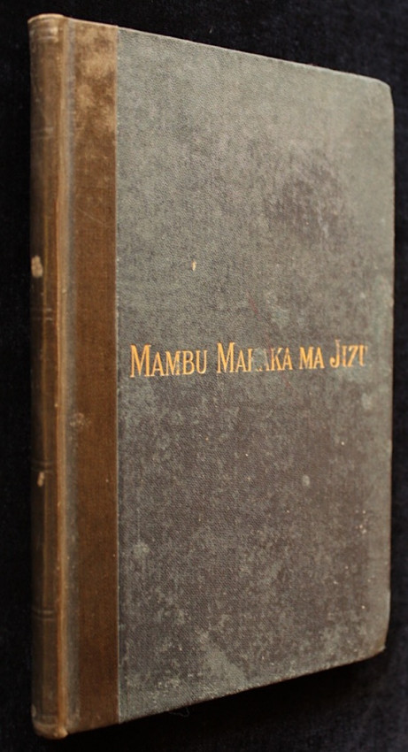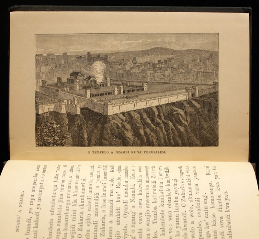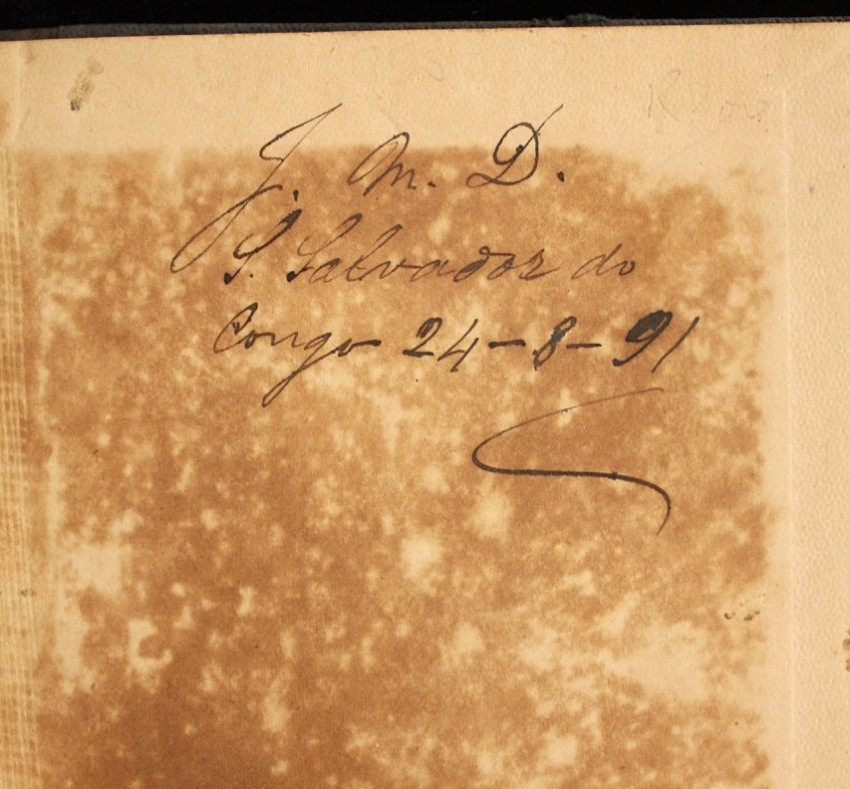 It is interesting to note that the previous owner's inscription on the front endpaper reads "J.M.D. Sao Salvador do Congo 24/8/91." Sao Salvador do Congo is the capital of Angola's northwestern Zaire province (now known as M'banza-Kongo). The inscription indicates that this book was at the mission station run by the Bentley's during the time that they were active there, and perhaps Mrs. Holman Bentley even distributed this book herself, along with other copies, among her students.