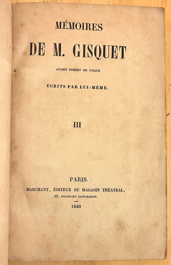 Published in the early 1840s, his multi-volume memoirs detail his career and police work, particularly during the July Monarchy.