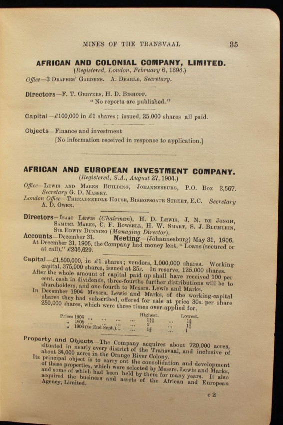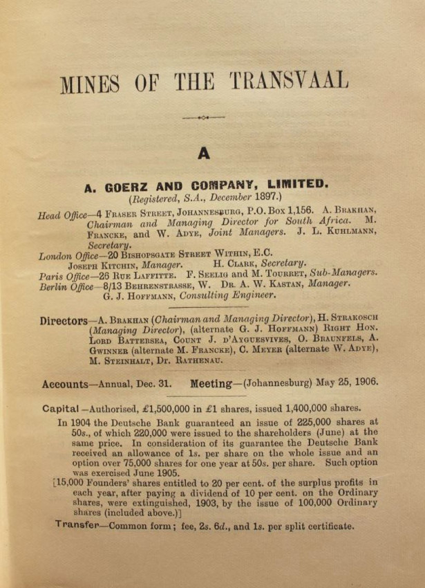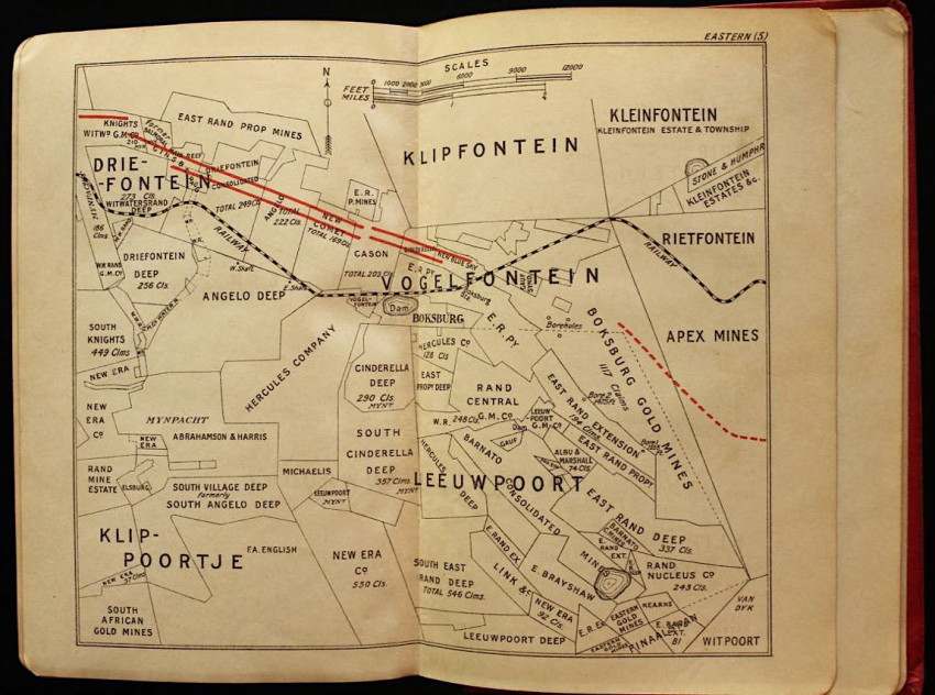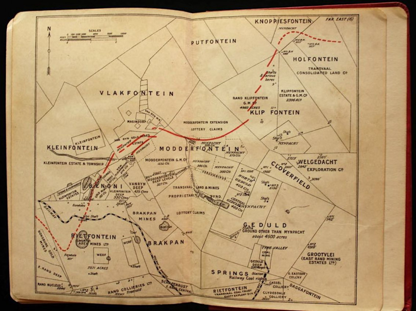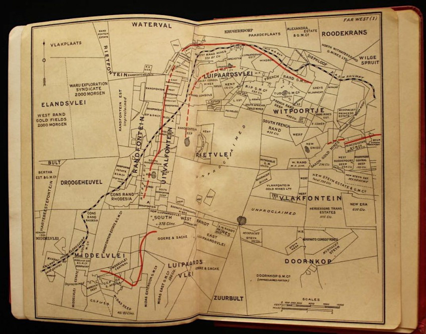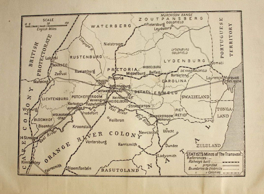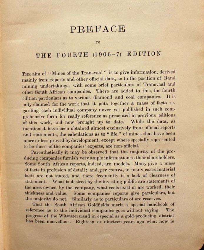 [7]pp adverts relating to the mining industry + Map of South Africa (as frontispiece) + 776pp + 7 maps at rear.