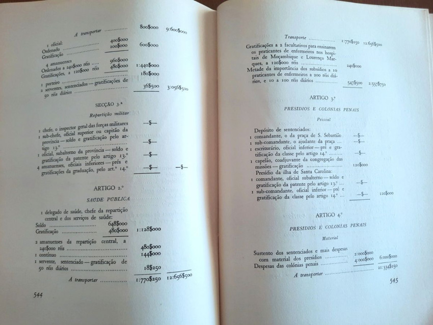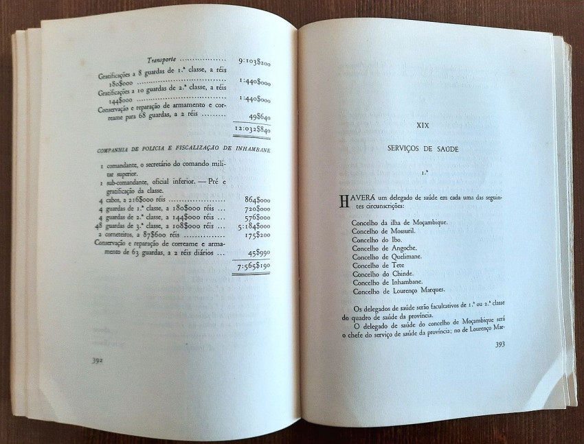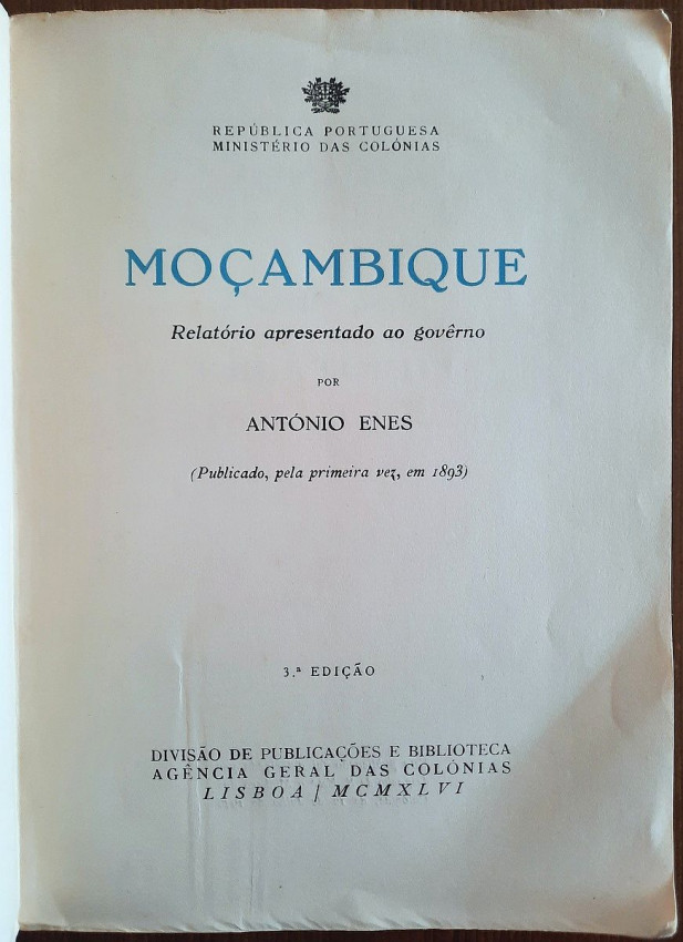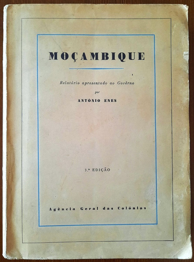 A fundamental document of the Portuguese colonial administration, originally written by António Enes in 1893, detailing the situation in Mozambique for the metropolitan government, addressing administrative, economic and social aspects, and serving as a basis for colonial policy. With exhaustive statistics, numerous tables, data, etc.