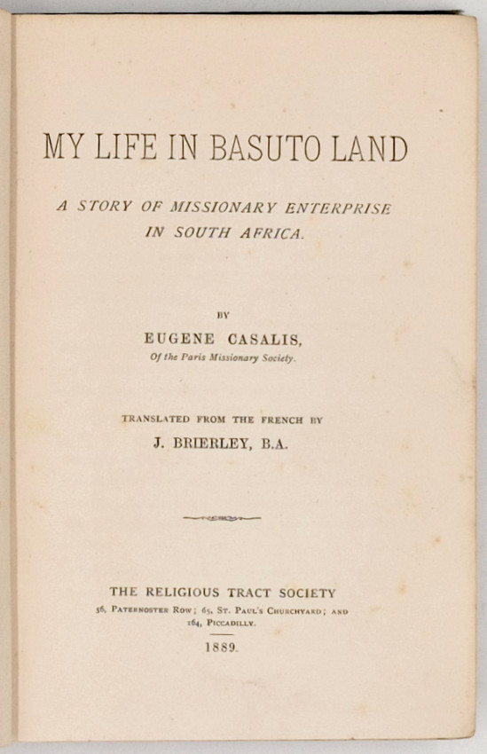 Mendelssohn (Sidney) South African Bibliography volume 1 page 307, 'Mr. Casalis joined the Protestant Missionary Society in Paris, and was selected for service in South Africa. He gives a good account of the personal appearance and character of Dr. Philip, and describes in an accurate manner the Cape Boers who, he remarks, hate to be called Boers as much as they love to be called Afrikanders. The volume is of a more personal character than " The Basutos," and there is an account of the author's courtship and married life in Basutoland. In 1854 Mr. Casalis lost his wife, and soon after left South Africa to take up the direction of the Mission House in Paris.'