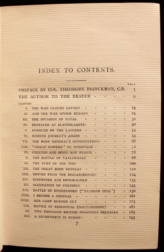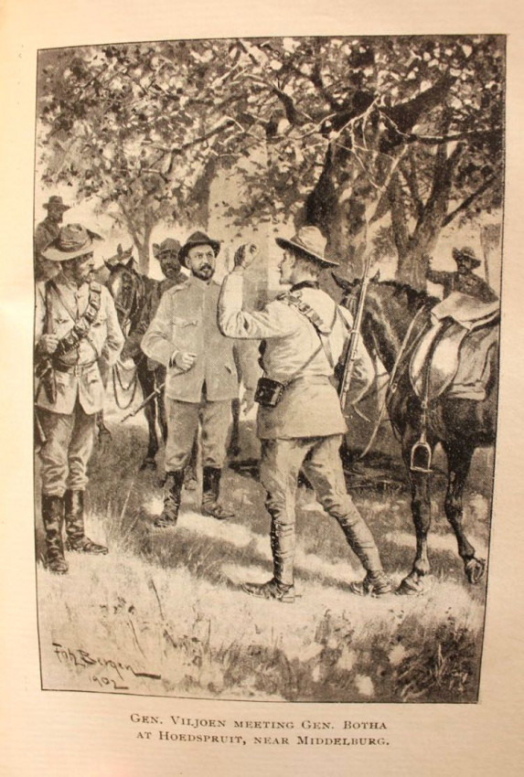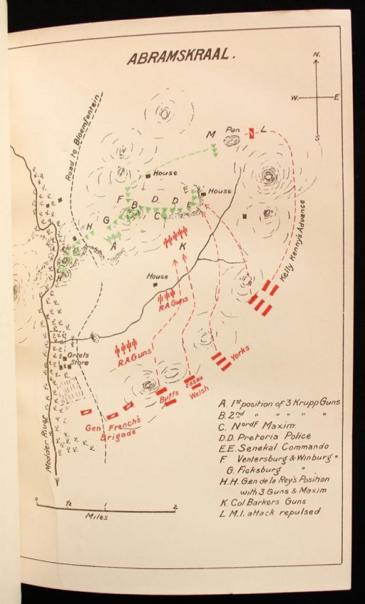 Binding sound. Contents clean. The frontispiece is present but detached and has the same portrait of Viljoen laid down on the back of it. There is also a small portrait of Viljoen laid down on the front endpaper captioned "General Ben Viljoen, Captured by Major Orr".