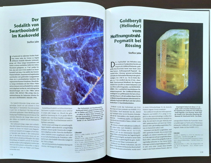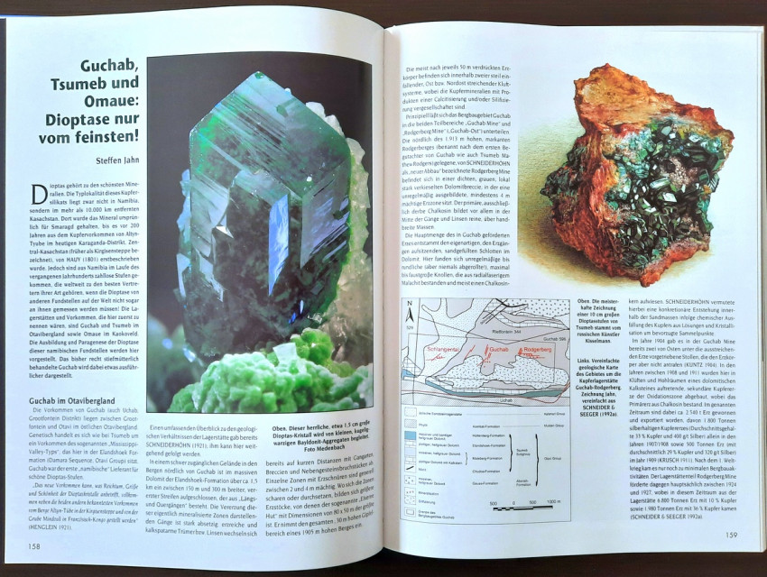 "...The result is a book that makes a first attempt to present some of Namibia's most beautiful mineral and gemstone treasures in words and pictures. We were supported in this endeavor by collectors from Namibia and South Africa, who gladly and willingly opened their collection cabinets and thus made it possible for the entire (mineral) world to enjoy these extraordinary 'gems'." (From the Publisher's preface)