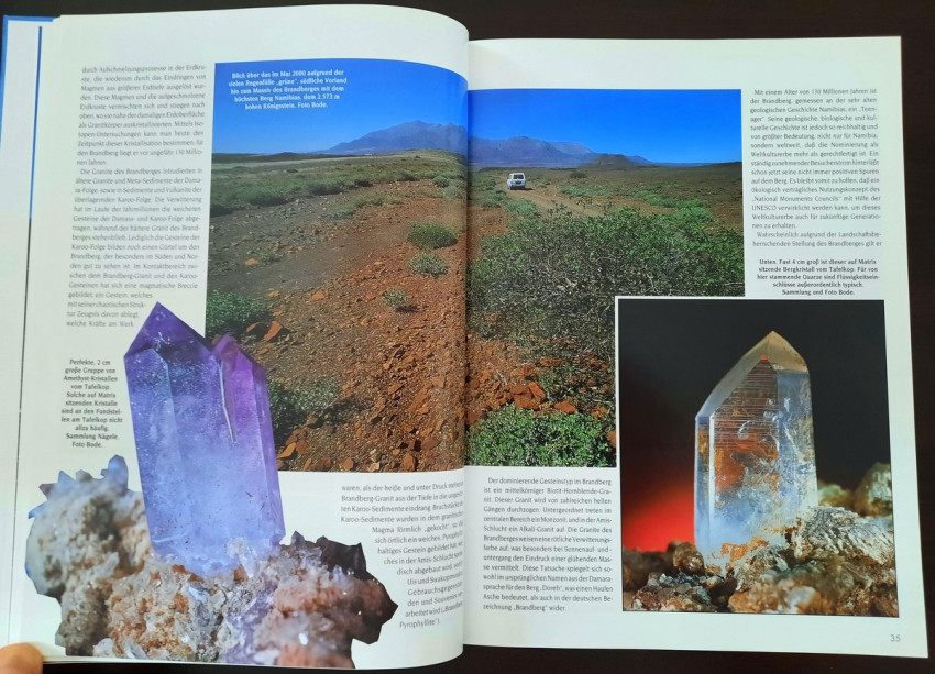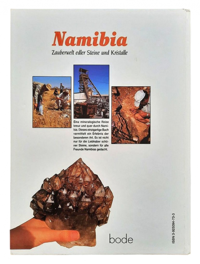 "A mineralogical journey criss-crossing Namibia. This unique book offers a truly unique experience. It is intended not only for lovers of beautiful stones, but for all friends of Namibia." (Note from the Publisher)
