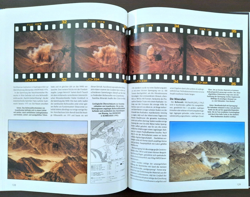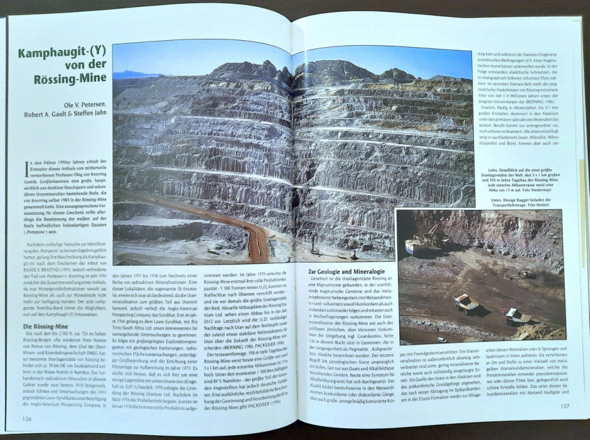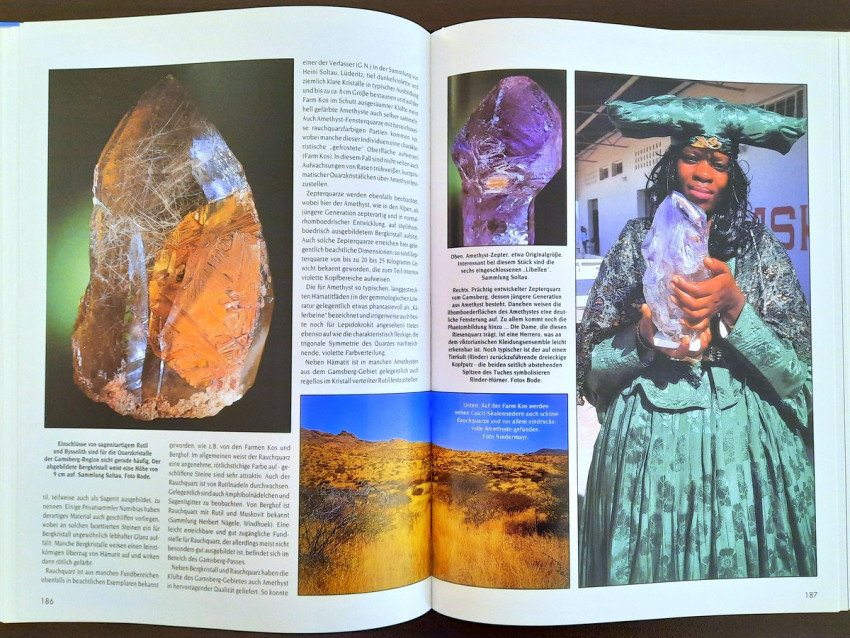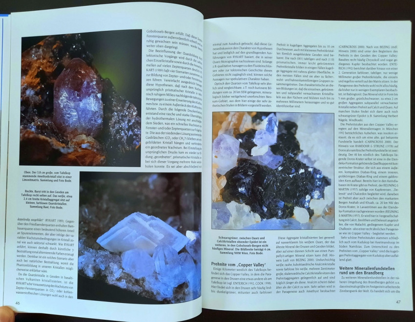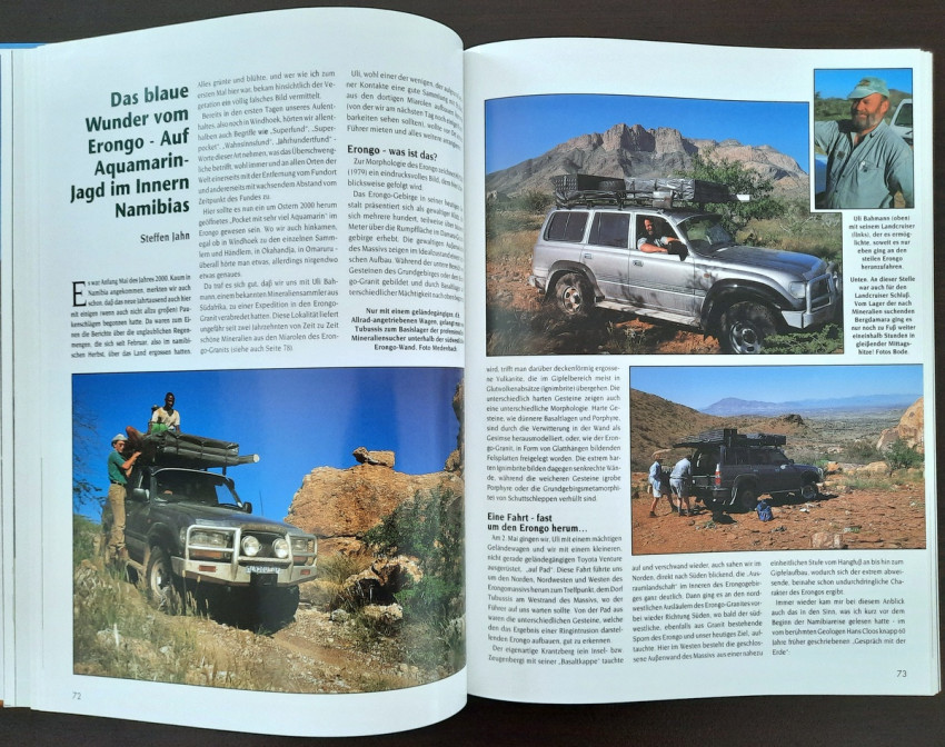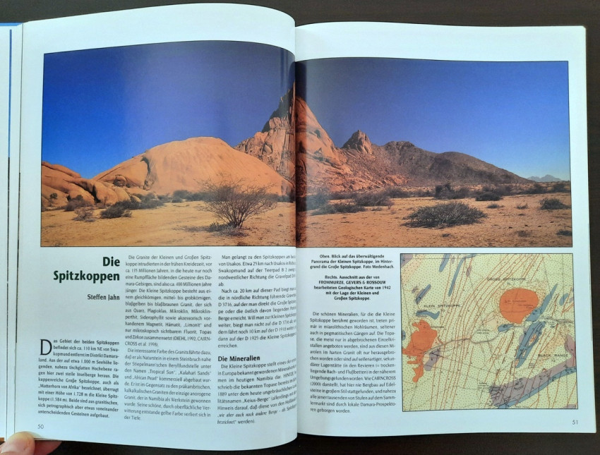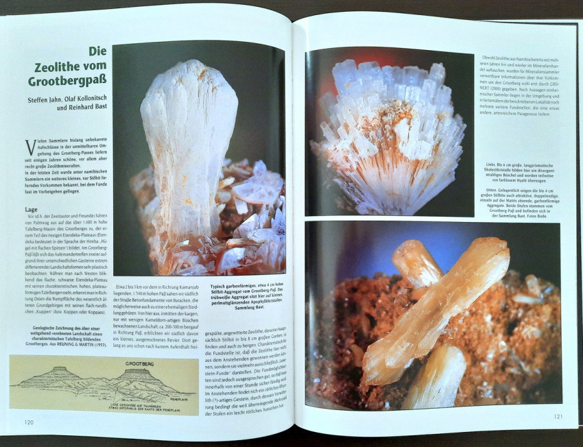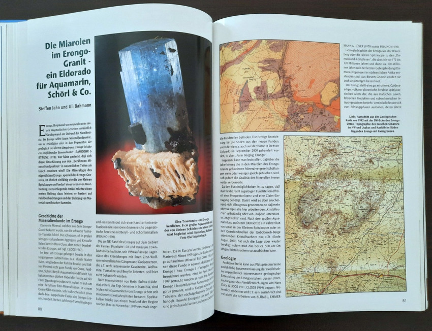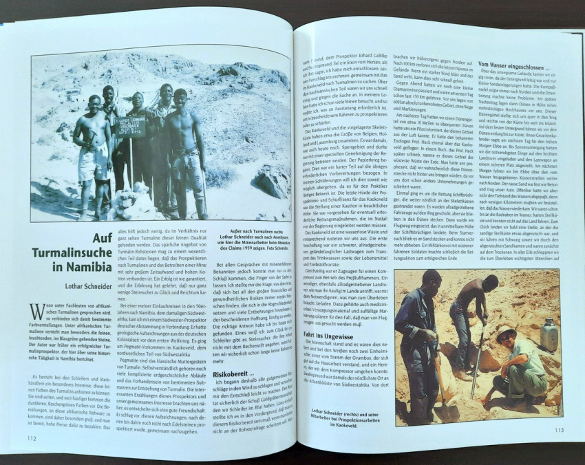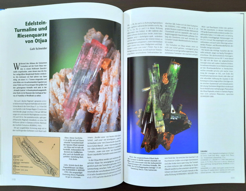 "...The result is a book that makes a first attempt to present some of Namibia's most beautiful mineral and gemstone treasures in words and pictures. We were supported in this endeavor by collectors from Namibia and South Africa, who gladly and willingly opened their collection cabinets and thus made it possible for the entire (mineral) world to enjoy these extraordinary 'gems'." (From the Publisher's preface)